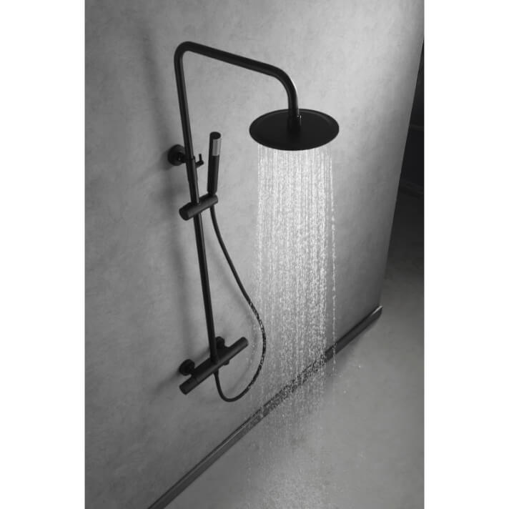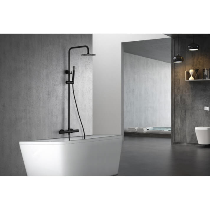 Columna para baño con grifería termostática apta para bañera y ducha acabado negro mate Line Imex