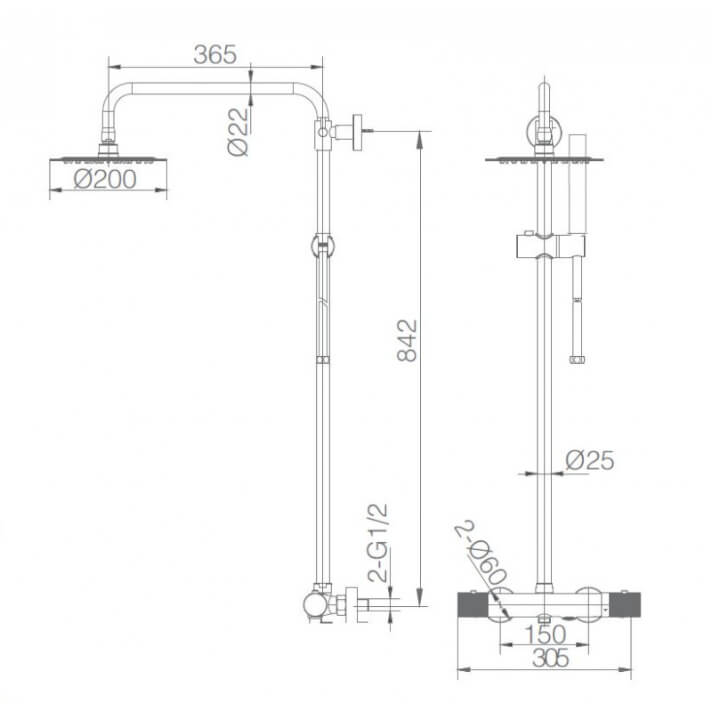 - Las dimensiones de la columna son de 365 mm de largo x 842 mm de alto.